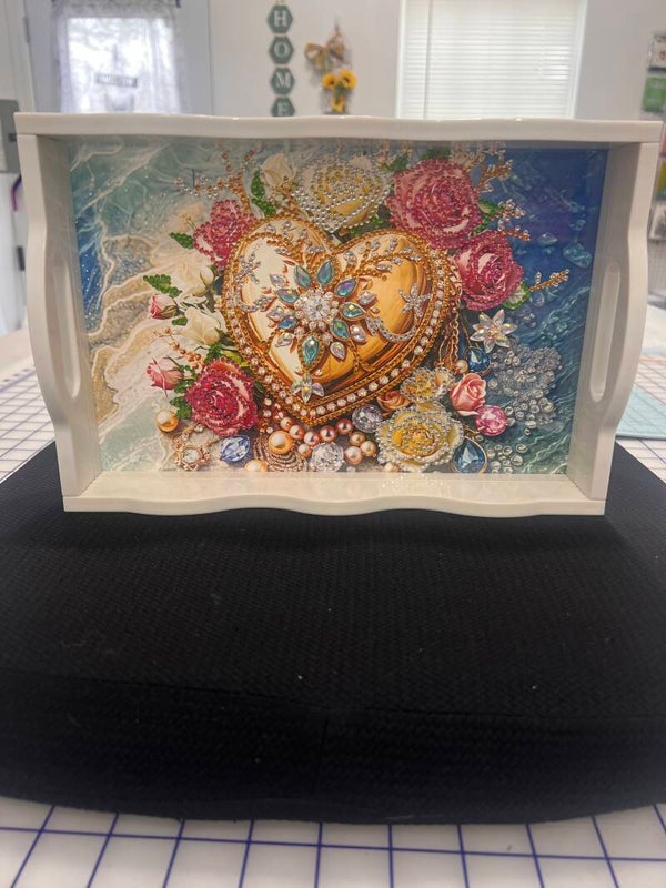 This tray is 8" wide by 12" long. Flower Pattern Design, Mosaic Frame Tray multi-functional rectangular plastic tray, reusable service tray, restaurant tray, breakfast tray, storage tray, home dinner plate suitable for kitchen and dining room, buffet table decoration.