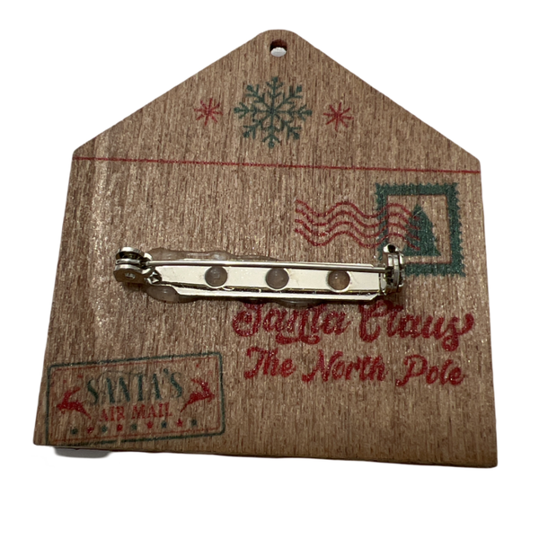 2" x 2" Wooden Brooch. This was bought and finished by MM. Just to cute. Very light weight, pin this on and everyone will want to know what you wished for this Christmas.