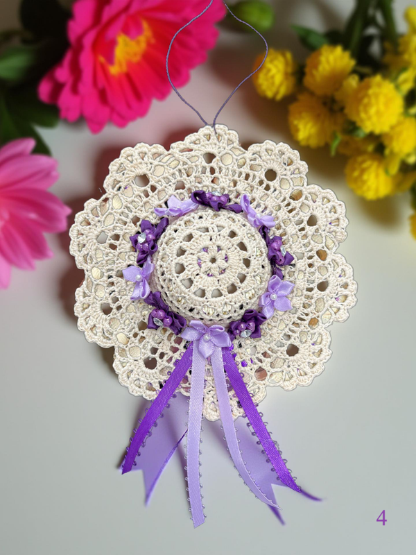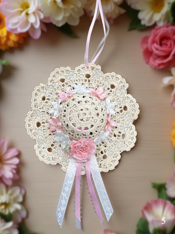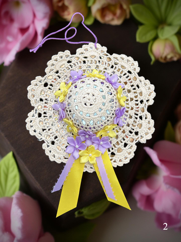 5" x 5" Crocheted Hat Ornament by MM. Great for wall hanging or shelf ornament piece. Whatever you use them for they will add a great little touch of decor to anyones home.