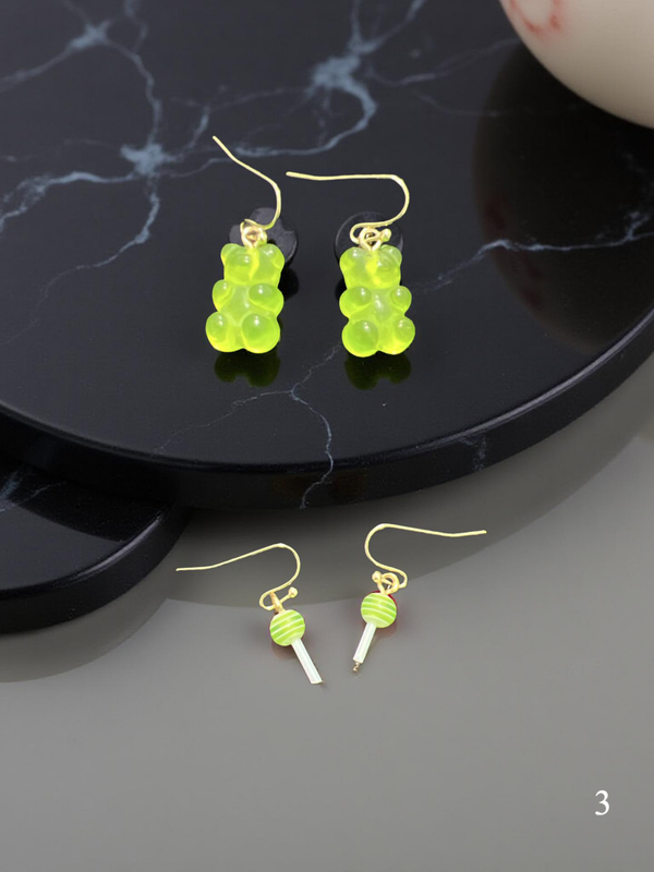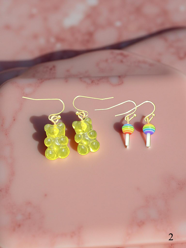 Adorable set of two contains a pair of Gummy Bear costume earings and Lollipop costume earings.
