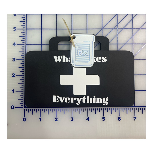 4.5" x 7" Get well card made from card stock. Handcrafted by BH. Open the medicine bag from the top. What fixes everything? A Bandaid. Make someone whos not feeling well smile.