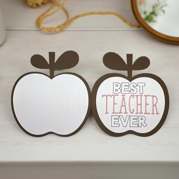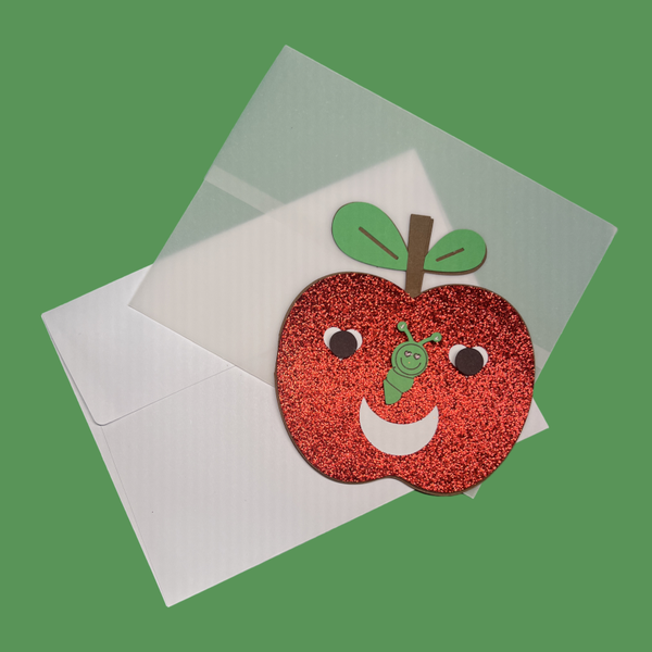 4" x 4" Handcrafted card out of glitter card stock. Do you have a great teacher. Give her an apple that will last forever.