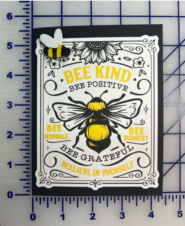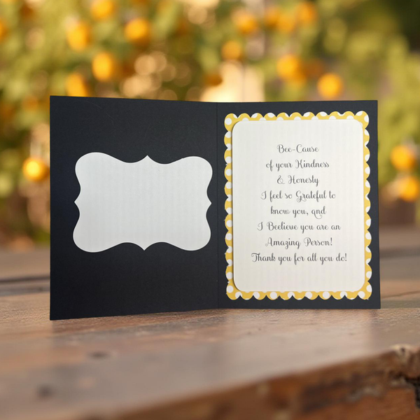 5.5" x 4.5" Thank you card made from card stock. What a great way to say thank you. Comes with envelope and bee sticker to seal with.