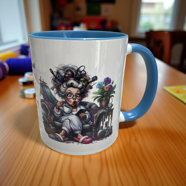 Cute Old Sewing Ladys Having Coffee 11oz Mug