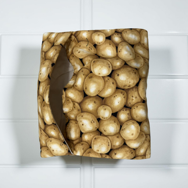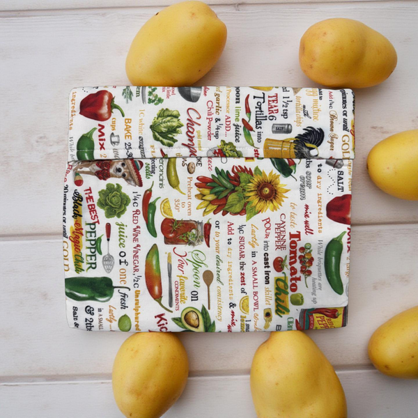 These Microwaveable bake potato bags measure 9" x 10" Some patterns vary a little.