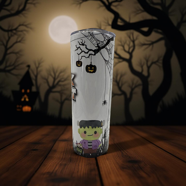 Get into the Halloween spirit with this delightful 20oz insulated tumbler! Adorned with a charming spooky character and 'TRICK OR TREAT' text, its durable stainless steel and double-wall vacuum insulation ensure your beverages stay at the perfect temperature. It includes a convenient metal straw, straw cleaner, and a non-slip rubber base for stability.
