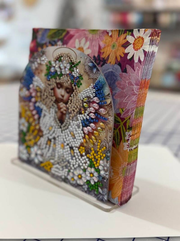 5D diamond painting featuring a serene angel napkin holder