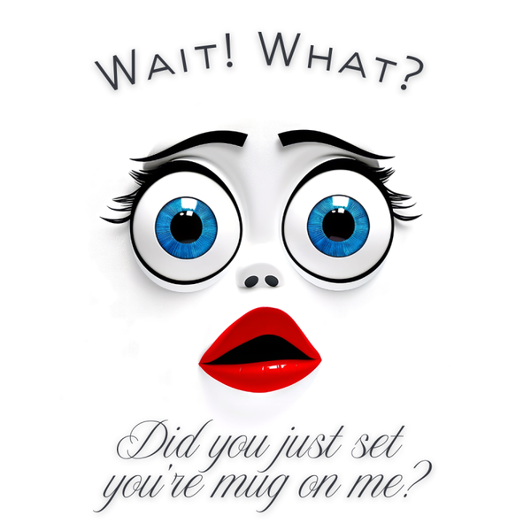 - A surprised face with a shocked expression, asking, "WAIT! WHAT? Did you just set you're mug on me?"