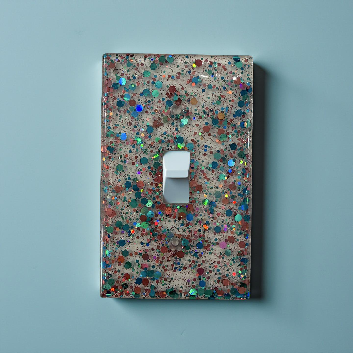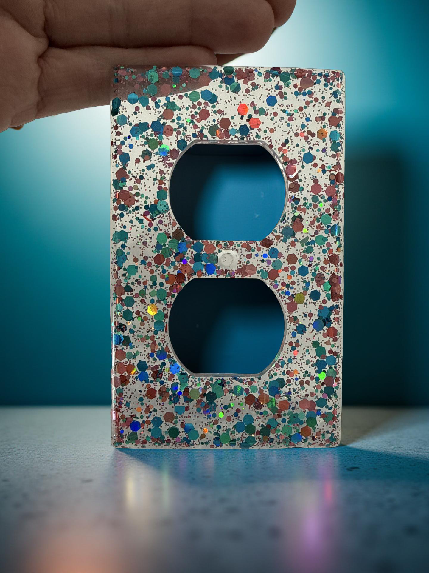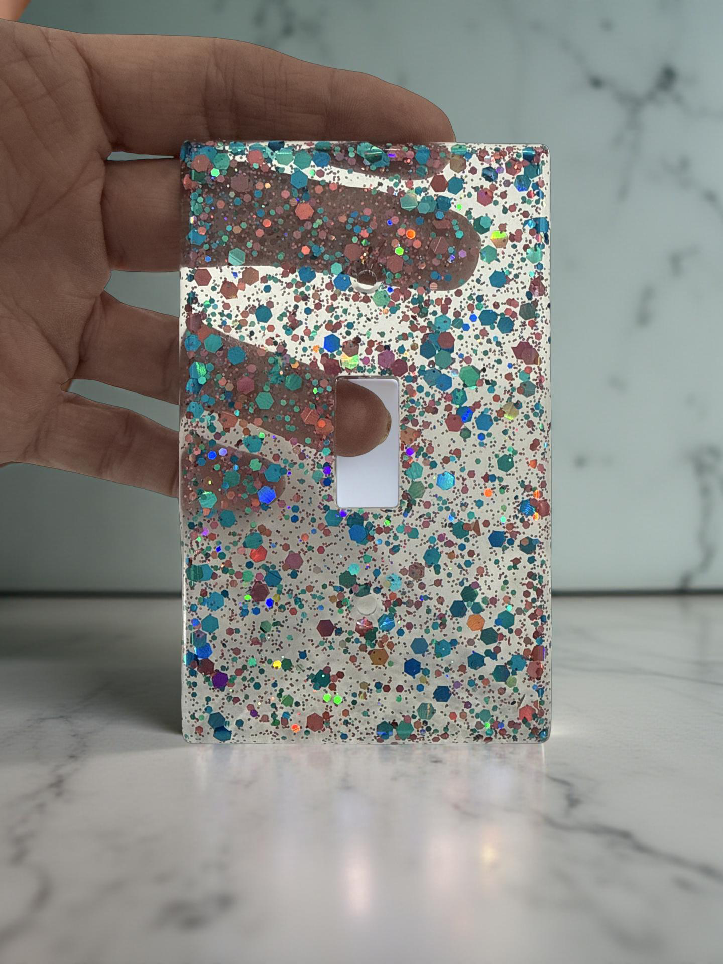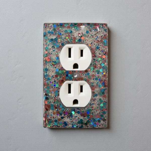 Add a touch of whimsical sparkle to any room with these handcrafted glitter resin light switch and outlet covers. Each piece is a unique work of art. These covers offer a fun, aesthetic update to standard home decor.