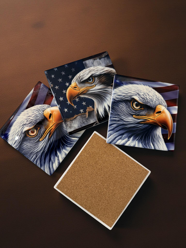 Patriotic Bald Eagle Ceramic Coaster Set (Set of 4)