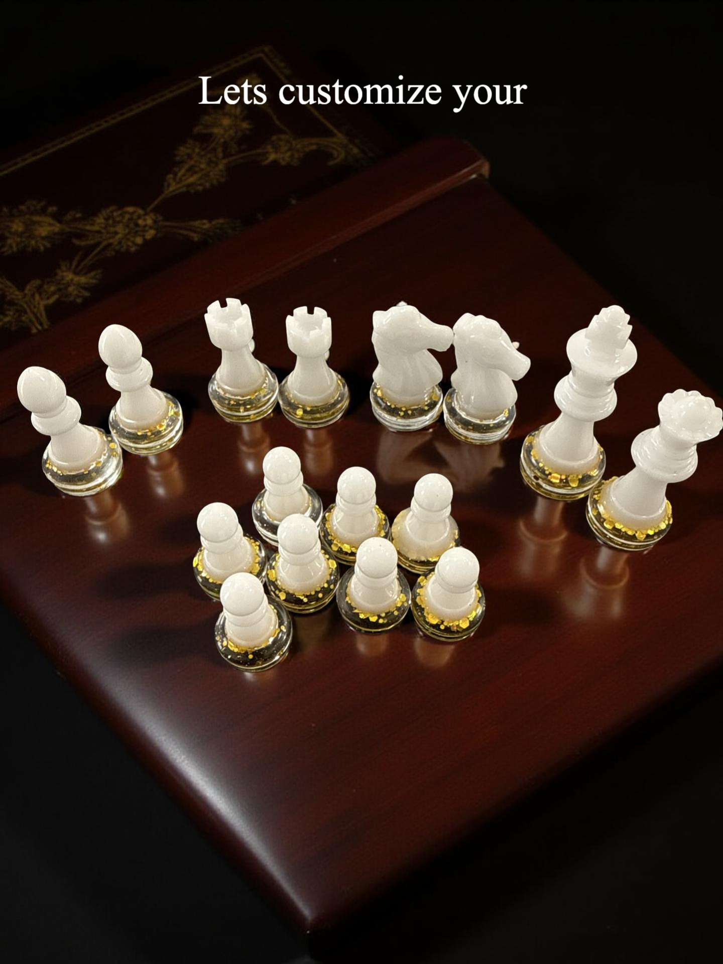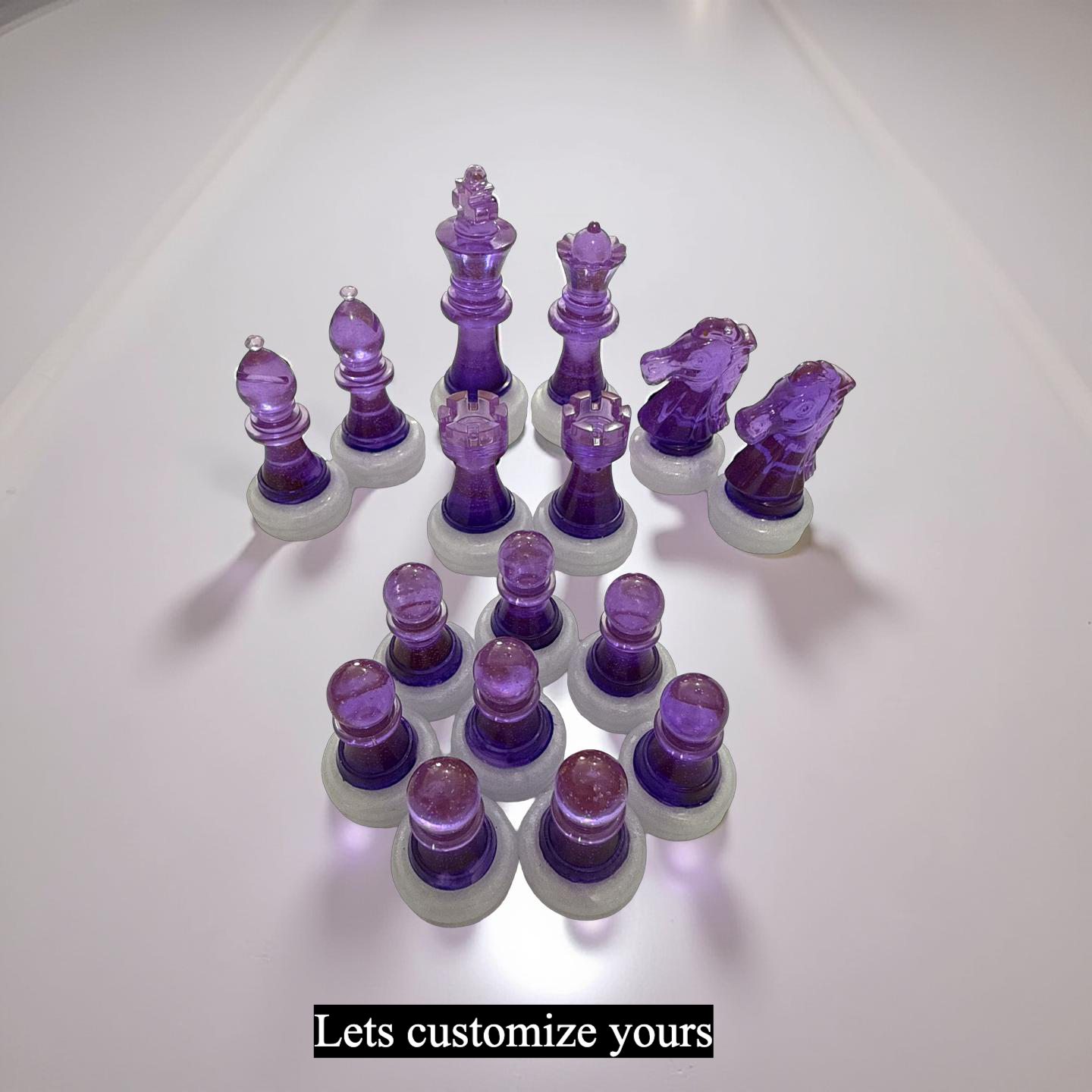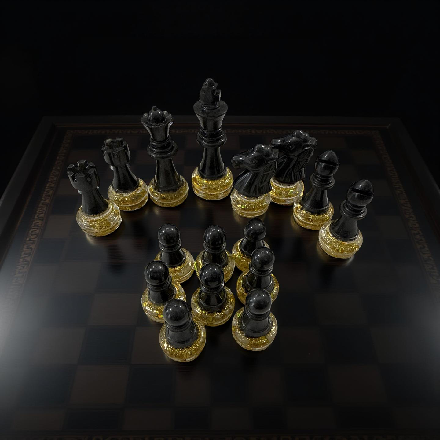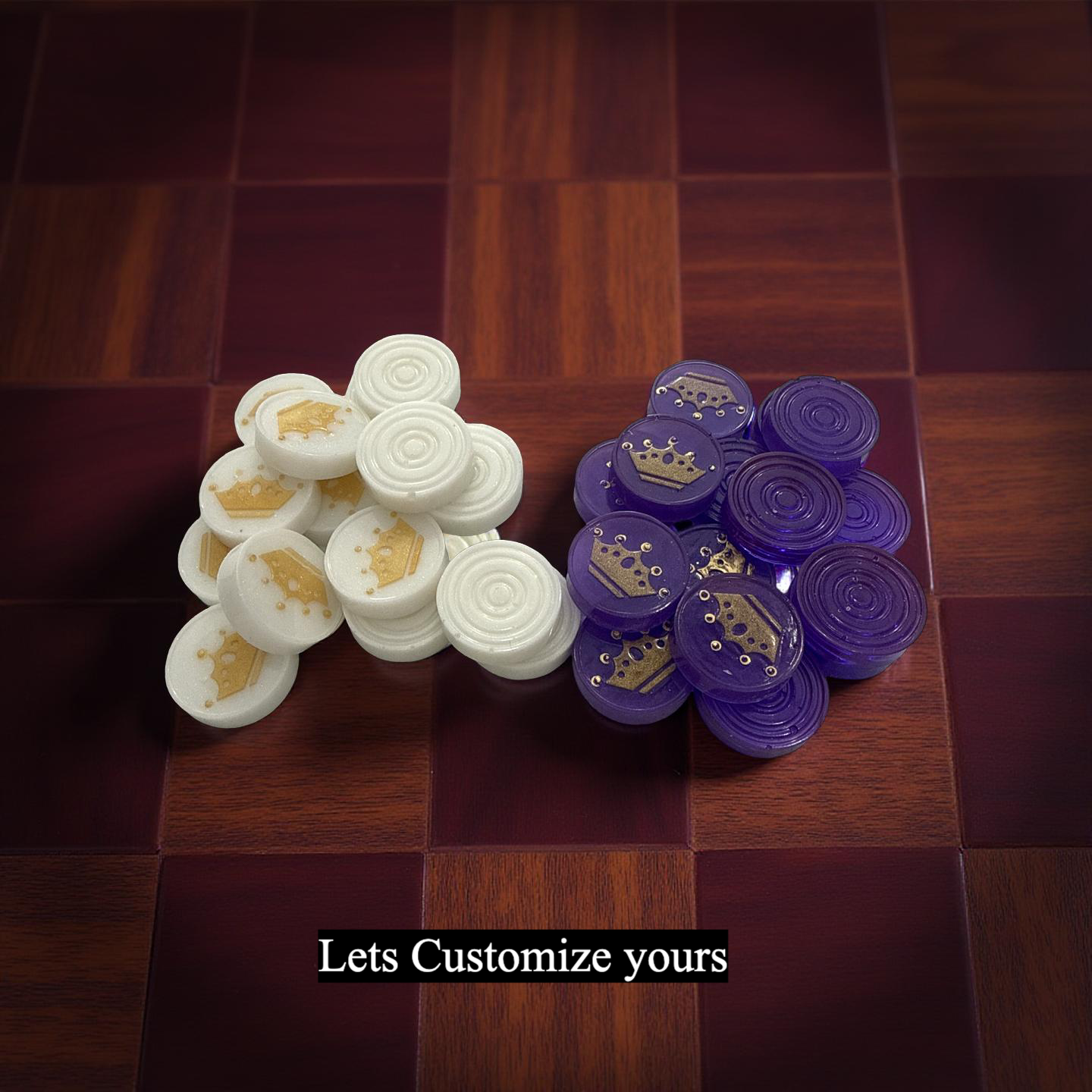 Design Your Masterpiece - Create a one-of-a-kind gaming set by selecting a palette of 2 to 4 colors in the order notes. You may provide specific instructions such as "red tops with white bottoms" for the pieces or simply list your colors and trust my artistic discretion to design a balanced, sophisticated layout for you. Please note that limiting your selection to four colors ensures a clean, professional aesthetic that highlights the beauty of the resin.