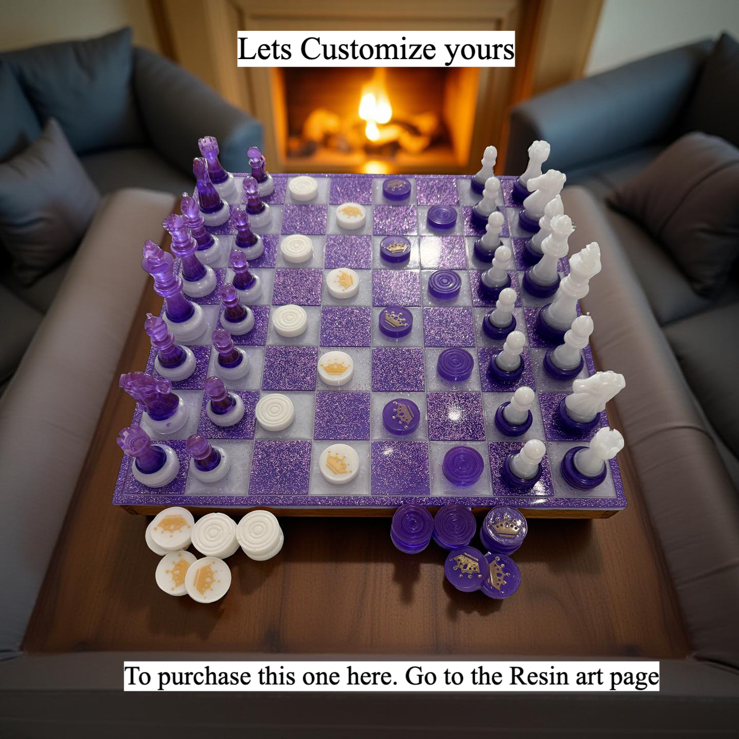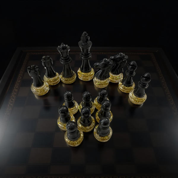 Each order is a complete, ready-to-play set featuring a custom-poured board along with a full collection of both chess and checkers pieces. Every component is meticulously finished to match your chosen aesthetic, providing a cohesive and striking look for your home or game room.