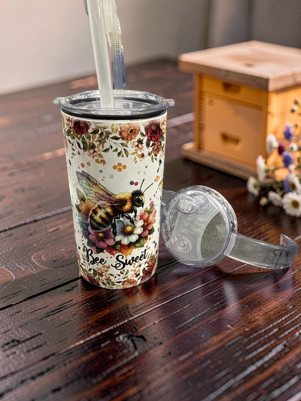 Spread some buzz-worthy positivity with this adorable and versatile 12 oz tumbler! Perfect for little hands or anyone who loves a bit of nature-inspired charm, this cup is designed to grow with you.